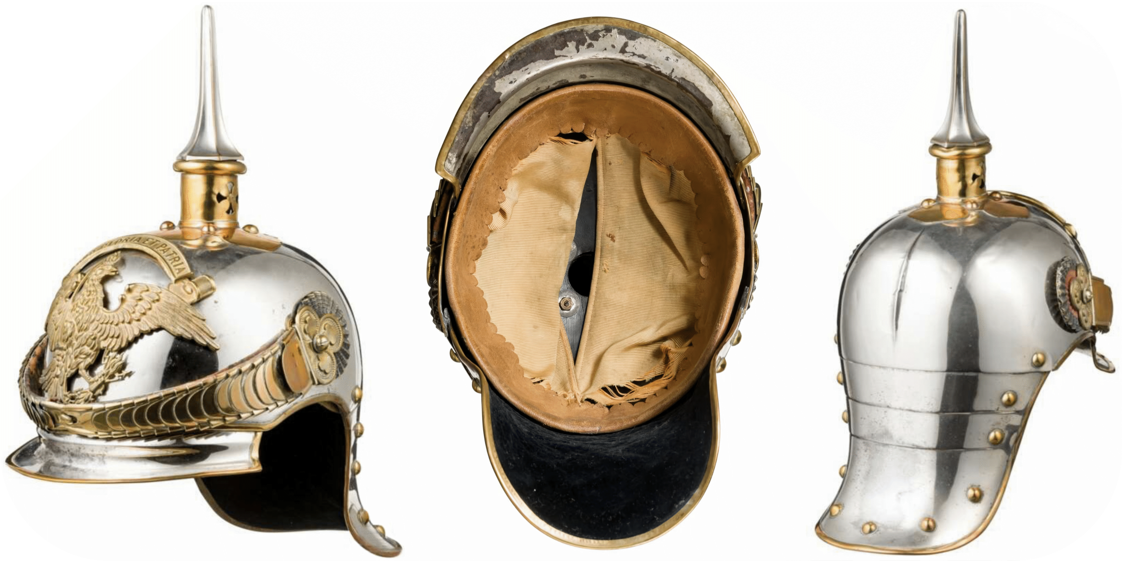During the Franco-Prussian War of 1870/71, several problems with the cuirassier's equipment became evident. The cuirass no longer offered protection against modern rifles, the old Brandenburg boots were a handicap when fighting on foot, and the helmet had an non-optimal shape that was an obstacle for the introduction of a carbine into the armament of the cuirassiers. Despite these disadvantages, Kaiser Wilhelm I. resisted any changes to the uniform or equipment, as he was very taken with the appearance of his cuirassiers. For this reason, the necessary modifications to the uniform were made after his passing, by AKO of 28.1.1889. With these changes, the M1889 helmet lost much of its original grace, but the appearance was in keeping with the taste of the time.