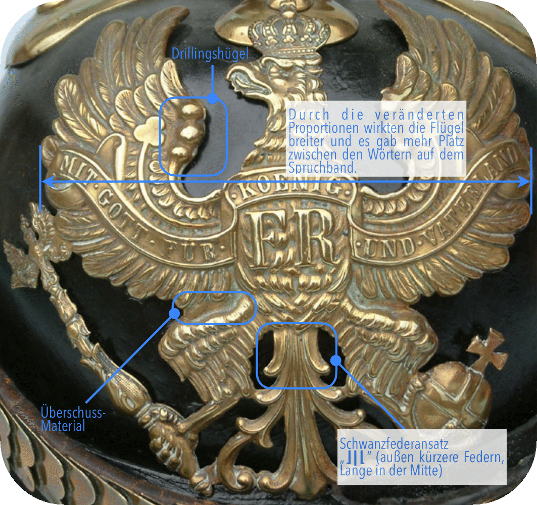 Merkmale preussischer Linien Helmadler der verschiedenen Pickelhauben-Modelle
