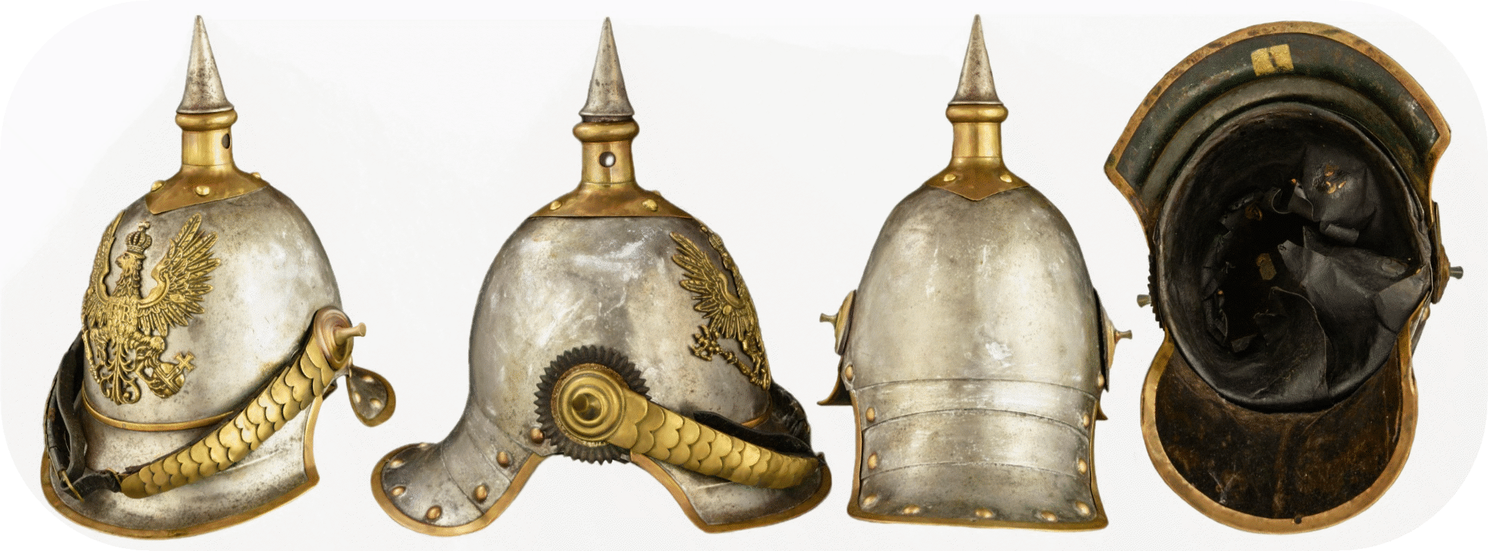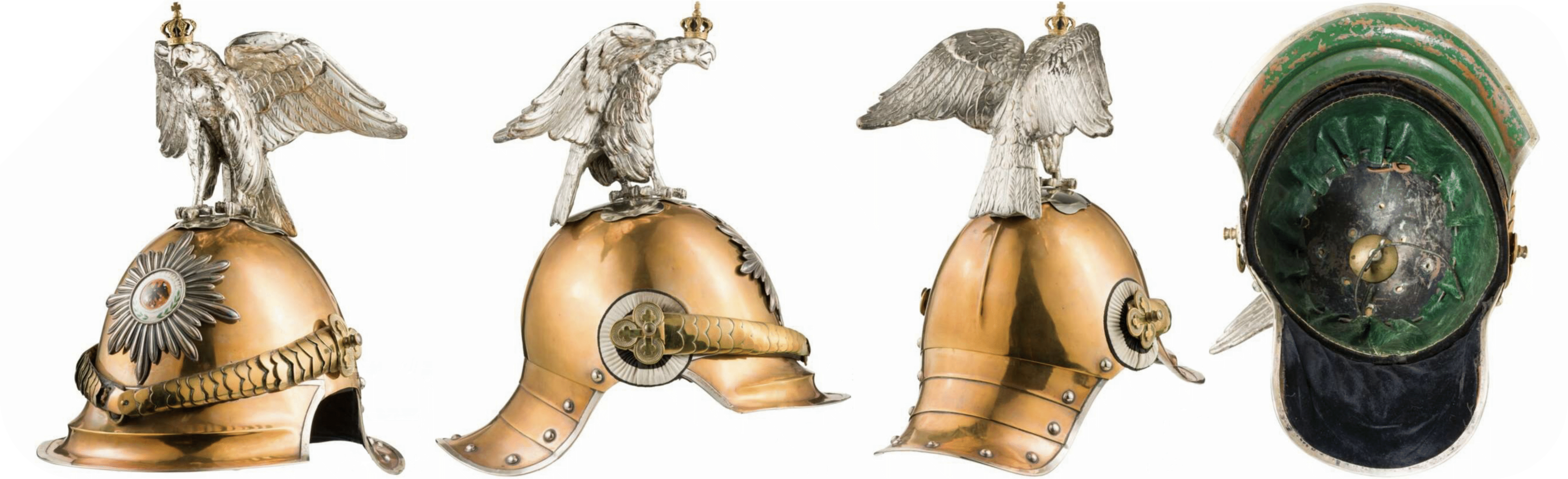 - The officer's helmet had the same shape, materials and dimensions as the enlisted helmet. But it was much more carefully crafted and the tombac or brass parts were fire-gilded, the nickel silver parts silver-plated.