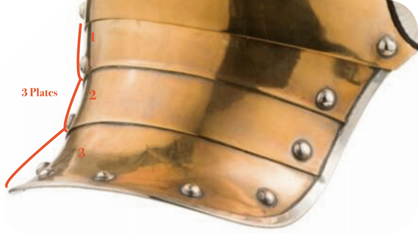 - The rear visor consisted of 3 sheets (Fig. 2). These were first assembled and the edges were then also framed with a metal trim. The inside of the visor remained unfinished, since it was later covered with black leather and the edges of the leather were to be covered with the metal trim. After completion, the rear visor was then riveted to the helmet shell from the inside. So that it remained somewhat movable it was fastened only at the two sides, to it. The mobility should, so it was believed at least, protect the rider in case of falls from the horse.